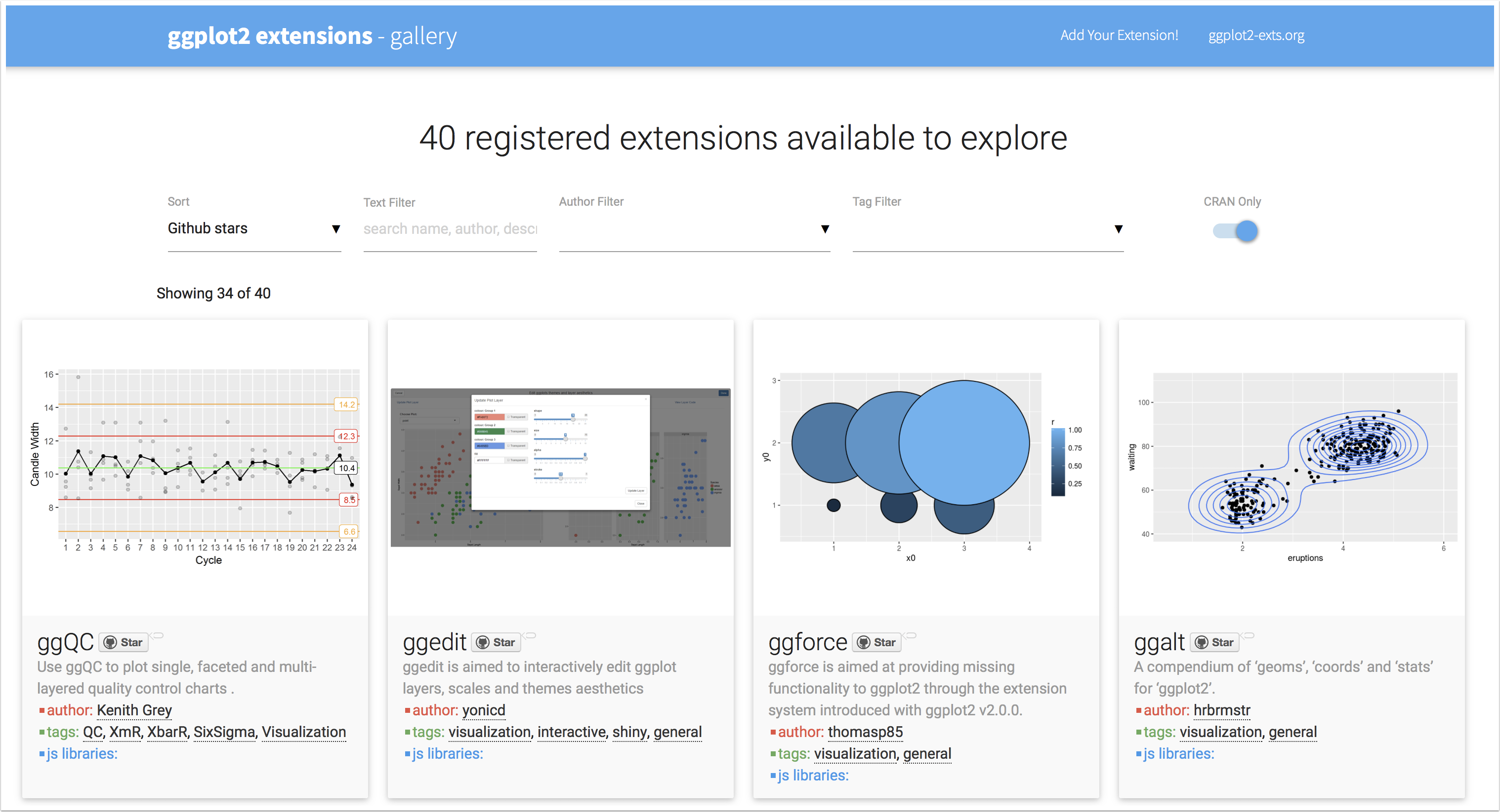 --- ```r data %>% mutate(Week = lubridate::week(Week)) %>% split(.$Assignee) %>% purrr::map(function(d) { * purrr::map(seq(nrow(d)), * ~d[c(seq(.x), rep(.x, nrow(d) - .x)), ])}) %>% * purrr::map(~tweenr::tween_states(., 5, 2, 'cubic-in-out', 100)) %>% {do.call(rbind, .)} -> tweenr_data tweenr_data %>% ggplot(aes(Week, `# of questions`, frame = .frame)) + geom_path(aes(color=Assignee), alpha = 0.7, size=2) + theme_minimal() + theme(text = element_text(size=30))-> tween_chart animation::ani.options(interval = 0.05) *gganimate(tween_chart, "tween_chart.gif", title_frame = FALSE, * ani.width=1600, ani.height=600) ```  --- class: middle, center # And Thomas is not done yet... <section> <img width="300" src="./transformr.gif"> </section> He is currently working on a [`transformr` package](https://github.com/thomasp85/transformr)<br /> for smooth polygon transformations! --- class: middle, center # And Thomas is not done yet... As well as on a complete grammar of animation for ggplot2! <img src="./thomas.gif" width="22%"> <blockquote class="twitter-tweet" data-lang="en"><p lang="en" dir="ltr">More grammar arrives:<br><br>ggplot(mtcars, aes(factor(cyl), mpg)) + <br> geom_boxplot() + <br> geom_point() +<br> transition_states(am, transition_length = 4, state_length = 1) + <br> view_follow() </p>— Thomas Lin Pedersen (@thomasp85) <a href="https://twitter.com/thomasp85/status/988863035388366851?ref_src=twsrc%5Etfw">April 24, 2018</a></blockquote> --- class: inverse, center, middle # 2. Using extensions --- # Where to find extensions? For extensions and themes, the best place to start is [ggplot2-exts.org](http://www.ggplot2-exts.org/gallery/). In addition to `gganimate`, there are 40 packages to discover.  --- # `ggrepel` for smart label placement [Kamil Slowikowski](https://slowkow.com)'s [`ggrepel` package](https://github.com/slowkow/ggrepel) was one of the first extension to gain fame. It places your label for you so they don't overlap. ```r ggplot(data=mtcars, aes(x=mpg, y=wt)) + geom_point() + geom_text(label=rownames(mtcars)) + theme_minimal() + labs(title="Labels without ggrepel...") ``` <!-- --> --- # `ggrepel` for smart label placement [Kamil Slowikowski](https://twitter.com/slowkow)'s [`ggrepel` package](https://github.com/slowkow/ggrepel) was one of the first extension to gain fame. It places your label for you so they don't overlap (lots of examples [on the vignette](https://cran.r-project.org/web/packages/ggrepel/vignettes/ggrepel.html)). ```r ggplot(data=mtcars, aes(x=mpg, y=wt)) + geom_point() + * ggrepel::geom_text_repel(label=rownames(mtcars)) + theme_minimal() + labs(title="Labels with ggrepel...") ``` <!-- --> --- # `ggrepel` for smart label placement Since `ggrepel::geom_text_repel` is just another `geom` you can select subsets the same way as usual. ```r *subdata <- subset(mtcars, mpg>25 | wt>4) ggplot(data=mtcars, aes(x=mpg, y=wt)) + geom_point() + * ggrepel::geom_text_repel(label=rownames(subdata), data=subdata, * force=3, min.segment.length=0) + theme_minimal() + labs(title="Labels with ggrepel...") ``` <!-- --> --- # `ggrepel` for smart label placement And if you want to manually select the points to label, you still have [Alicia Schep](https://twitter.com/aliciaschep)'s newly released [`gglabeller` package](https://github.com/AliciaSchep/gglabeller). ```r # Run the code below for live demo library(ggplot2) library(ggrepel) library(gglabeller) ggplot(mtcars, aes(mpg, wt)) + geom_point() + theme_minimal() -> p gglabeller(p, aes(label = rownames(mtcars))) ``` ### << `gglabeller` quick demo >> --- class: inverse, center, middle # 3. Spelunking ggplot internals --- # Word of caution > The internals of ggplot2 are dark and full of terrors... -- > ...or at least very sparsely documented. --- ## Three objects to explore If `p` is a plot done with `ggplot`. - The actual plot: `View(p)` - The build: `View(ggplot_build(p))` - The gtable: `View(ggplot_gtable(ggplot_build(p)))` -- ## A few nice ressources: - [Baptiste Auguie](http://baptiste.github.io)'s [Unofficial guide to gtable](https://cran.r-project.org/web/packages/gridExtra/vignettes/gtable.html) - [Bob Rudis](https://twitter.com/hrbrmstr)'s [guide to ggplot extensions](https://rud.is/books/creating-ggplot2-extensions/demystifying-ggplot2.html) - [Hadley Wickham](https://twitter.com/hadleywickham)'s official [ggplot2 extensions vignette](https://cran.r-project.org/web/packages/ggplot2/vignettes/extending-ggplot2.html) - Desperate Stack Overflow questions --- ## A (very) small dive in the internal ```r ggplot(mpg, aes(displ, hwy, colour = class)) + geom_point() -> gg str(ggplot_build(gg)) # Not for the faint-hearted... ``` ``` ## List of 3 ## $ data :List of 1 ## ..$ :'data.frame': 234 obs. of 10 variables: ## .. ..$ colour: chr [1:234] "#C49A00" "#C49A00" "#C49A00" "#C49A00" ... ## .. ..$ x : num [1:234] 1.8 1.8 2 2 2.8 2.8 3.1 1.8 1.8 2 ... ## .. ..$ y : num [1:234] 29 29 31 30 26 26 27 26 25 28 ... ## .. ..$ PANEL : int [1:234] 1 1 1 1 1 1 1 1 1 1 ... ## .. ..$ group : atomic [1:234] 2 2 2 2 2 2 2 2 2 2 ... ## .. .. ..- attr(*, "n")= int 7 ## .. ..$ shape : num [1:234] 19 19 19 19 19 19 19 19 19 19 ... ## .. ..$ size : num [1:234] 1.5 1.5 1.5 1.5 1.5 1.5 1.5 1.5 1.5 1.5 ... ## .. ..$ fill : logi [1:234] NA NA NA NA NA NA ... ## .. ..$ alpha : logi [1:234] NA NA NA NA NA NA ... ## .. ..$ stroke: num [1:234] 0.5 0.5 0.5 0.5 0.5 0.5 0.5 0.5 0.5 0.5 ... ## $ layout:Classes 'Layout', 'ggproto' <ggproto object: Class Layout> ## facet: <ggproto object: Class FacetNull, Facet> ## compute_layout: function ## draw_back: function ## draw_front: function ## draw_labels: function ## draw_panels: function ## finish_data: function ## init_scales: function ## map: function ## map_data: function ## params: list ## render_back: function ## render_front: function ## render_panels: function ## setup_data: function ## setup_params: function ## shrink: TRUE ## train: function ## train_positions: function ## train_scales: function ## vars: functio
