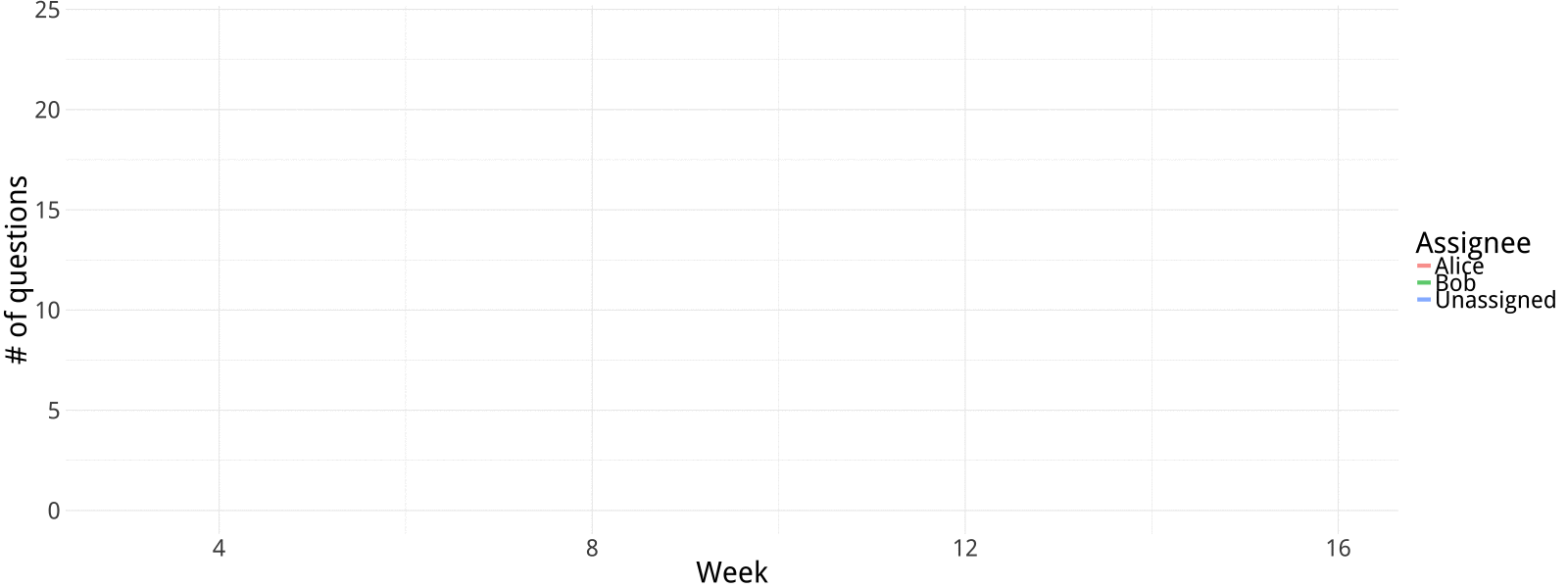 class: middle, centered # Three more 🥄🥄🥄 of ggplot2 ### Post Processing, extensions and internals <br /> <br /> #### Geneve R User Meetup — April 26th 2018 #### Xavier Adam (twitter: [@xvrdm](http://twitter.com/xvrdm/)) <img src="./epfl-exts-logo.png" width="30%"> --- class: middle # Menu du jour A look at what you can do **around** a basic ggplot2 chart. -- ### 1. ggplot2 **post-processing** -- ### 2. ggplot2 **extensions** -- ### 3. ggplot2 **surgery** --- class: inverse, center, middle # 1. Post-processing charts without leaving R --- ### Polishing ggplot2 charts [ROpenSci](https://twitter.com/rOpenSci)'s [`magick` package](https://github.com/ropensci/magick) is your little photoshop inside R. It lets you use the underlying [ImageMagick](https://www.imagemagick.org/script/index.php) graphics library. - [Github source for `magick`](https://github.com/ropensci/magick) - [Vignette with lots of examples](https://cran.r-project.org/web/packages/magick/vignettes/intro.html) Install with: ```r install.packages("magick") # If you get some errors check github page for info on # potentially missing dependencies ``` --- We will work on a simple chart with a basic dataset. ```r library(ggplot2) library(magrittr) library(dplyr) data <- readRDS("questions_per_week.Rds") data ``` ``` ## # A tibble: 42 x 3 ## Week Assignee `# of questions` ## <date> <fct> <int> ## 1 2018-01-15 Bob 13 ## 2 2018-01-15 Alice 0 ## 3 2018-01-15 Unassigned 0 ## 4 2018-01-22 Bob 16 ## 5 2018-01-22 Alice 2 ## 6 2018-01-22 Unassigned 0 ## 7 2018-01-29 Bob 13 ## 8 2018-01-29 Alice 0 ## 9 2018-01-29 Unassigned 0 ## 10 2018-02-05 Bob 4 ## # ... with 32 more rows ``` --- Basic line chart skeleton with `ggplot2`. ```r data %>% ggplot(aes(x=Week, y=`# of questions`)) + geom_line(stat="identity", aes(color=Assignee), alpha = 0.7, size=1.5) + labs(title="Number of questions per week") + theme_minimal() ``` <!-- --> --- Basic line chart skeleton with `ggplot2`. `ggplot()` creates your underlying layer and maps columns to axes. ```r data %>% * ggplot(aes(x=Week, y=`# of questions`)) ``` <!-- --> --- Basic line chart skeleton with `ggplot2`. `ggplot::geom_...()` creates the charts elements. Here `geom_line` creates lines (one color per Assignee). ```r data %>% ggplot(aes(x=Week, y=`# of questions`)) + * geom_line(stat="identity", aes(color=Assignee), alpha = 0.7, size=1.5) ``` <!-- --> --- Basic line chart skeleton with `ggplot2`. Lastly we play with some cosmetic settings (`ggplot::theme_...()`) and add a title (`ggplot::labs()`). ```r (data %>% ggplot(aes(x=Week, y=`# of questions`)) + geom_line(stat="identity", aes(color=Assignee), alpha = 0.7, size=1.5) + * labs(title="Number of questions per week") + * theme_minimal() -> sc) ``` <!-- --> --- How can we go from this... <!-- --> ...to this: <img src="fc.png" width="80%"> --- Adding support for Google Fonts, thanks to [Yixuan Qiu](https://statr.me)'s [`showtext`](https://github.com/yixuan/showtext) package. ```r *library(showtext) *font_add_google("Rubik", "Rubik") *showtext_auto() data %>% ggplot(aes(x=Week, y=`# of questions`)) + geom_line(stat="identity", aes(color=Assignee), alpha = 0.7, size=1.5) + labs(title="Number of questions per week") + theme_minimal() + * theme(text = element_text(family = "Rubik")) ``` <!-- --> --- Save the chart in a `.png` file with `ggplot2::ggsave()`. ```r library(showtext) font_add_google("Rubik", "Rubik") showtext_auto() # Here we assign the chart to a `lchart` variable # at the end of the pipeline instead of printing it # Note that we did not add a title... data %>% ggplot(aes(x=Week, y=`# of questions`)) + geom_line(stat="identity", aes(color=Assignee), alpha = 0.7, size=2) + theme_minimal() + * theme(text = element_text(family = "Rubik")) -> lchart ``` -- ```r # Then we save it, as a png. *ggsave(lchart, filename="chart.png", width = 8, height = 3) ``` Now we have `chart.png` in our computer, ready to be modified. --- Adding 6-pixels-thick horizontal borders to a chart with `magick::image_border()`. ```r library(magick) # Reopen the image and assign it to variable `chart` chart <- image_read("chart.png") # Save the height in pixel of the image height <- image_data(chart) %>% attributes() %>% .$dim %>% .[[3]] # Adding top and bottom red borders chart %>% image_border("red", "0x6") ``` <img src="deck_files/figure-html/unnamed-chunk-11-1.png" width="3200" /> --- Make a more complex margin: 50px + 6px + 170px. Then crop the bottom margin. I haven't found a way yet to not create the bottom margin, the `magick::image_border()` seems to only work symetrically ```r (chart_w_margins <- chart %>% image_border("white", "0x50") %>% image_border("red", "0x6") %>% image_border("white", "0x170") %>% # Crop the bottom margins image_chop(stringr::str_glue("0x{170}+0+{height+170+6*2+50*2}")) %>% image_border("grey", "2x2")) ``` <img src="deck_files/figure-html/unnamed-chunk-12-1.png" width="3205" /> --- Add a title with `magick::image_annotate()`. ```r (chart_w_title <- chart_w_margins %>% image_annotate("Number of questions asked per Assignee", font="Rubik", size = 70, color = "darkgrey", gravity="northwest", location = "+50+40")) ``` <img src="deck_files/figure-html/unnamed-chunk-13-1.png" width="3205" /> --- Load a `.svg` logo as another `magick` object, then use `magick::image_composite` to layer it on top of the chart. ```r logo <- image_read_svg("epfl-exts-logo.svg", height = 110) (chart_w_logo <- chart_w_title %>% image_composite(logo, offset = "+1870+30")) # Adding logo on top of chart ``` <img src="deck_files/figure-html/unnamed-chunk-14-1.png" width="3205" /> --- Wrapping the entire thing in two functions. A reusable template function: ```r epfl_exts_template <- function(chart, title) { chart %>% ggsave(filename="chart.png", width = 8, height = 3) chart <- image_read("chart.png") height <- image_data(chart) %>% attributes() %>% .$dim %>% .[[3]] chart %>% image_border("white", "0x50") %>% image_border("red", "0x6") %>% image_border("white", "0x